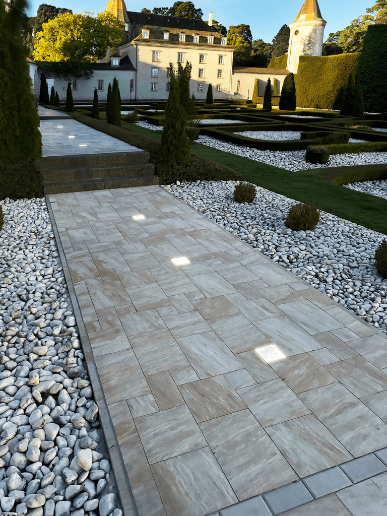 Dlažba Royal – velké betonové formáty s protiskluzovým povrchem v přírodní barvě. Bezpečí, styl a komfort pro zahradu i terasu