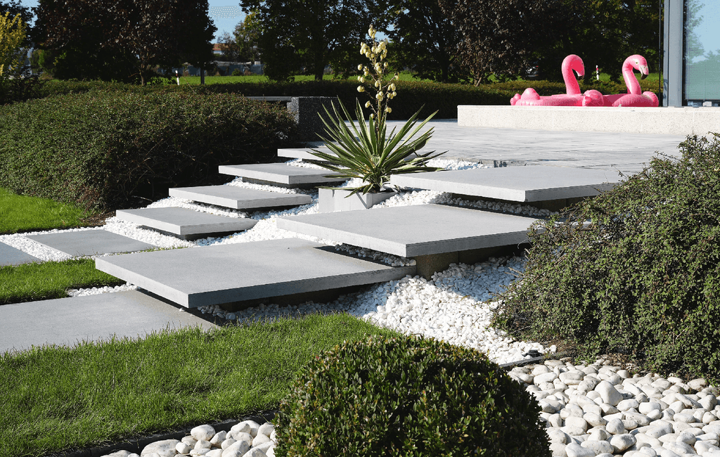 Royal findet Verwendung auf Terrassen, Wegen, rund um den Pool sowie als einzelne Trittsteine. Es ist hervorragend geeignet für Orte mit wechselndem Gelände oder als Verbindung zwischen Haus und Garten. Wetterbeständig, leicht zu pflegen und bringt Ruhe in den Alltag.