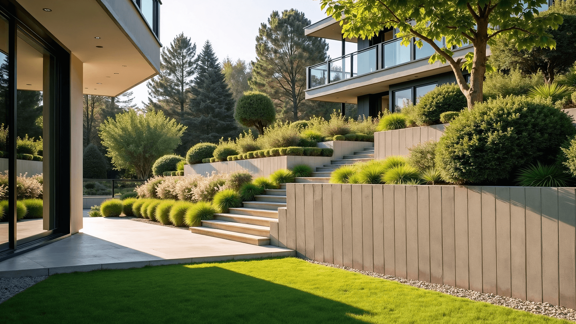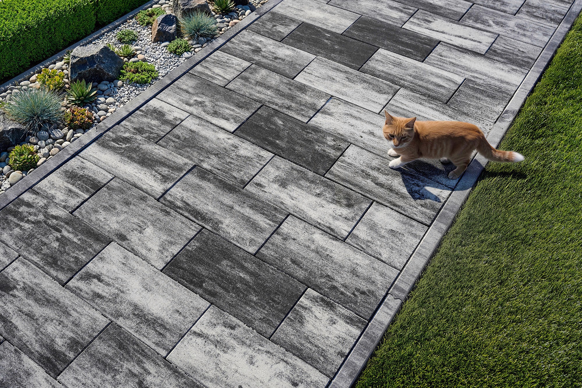 We also think about functionality: Paving gutter directs water runoff in ditches and slopes. Practical, durable solution that naturally blends with the surroundings. Retaining walls and palisades combine strength with aesthetics and space for greenery.