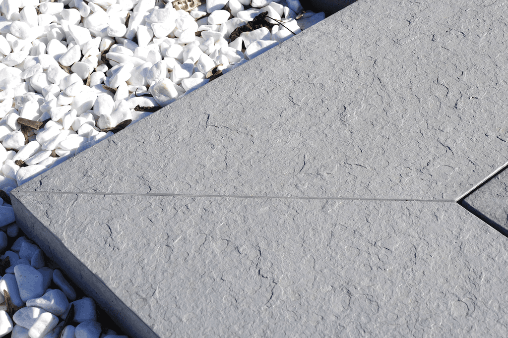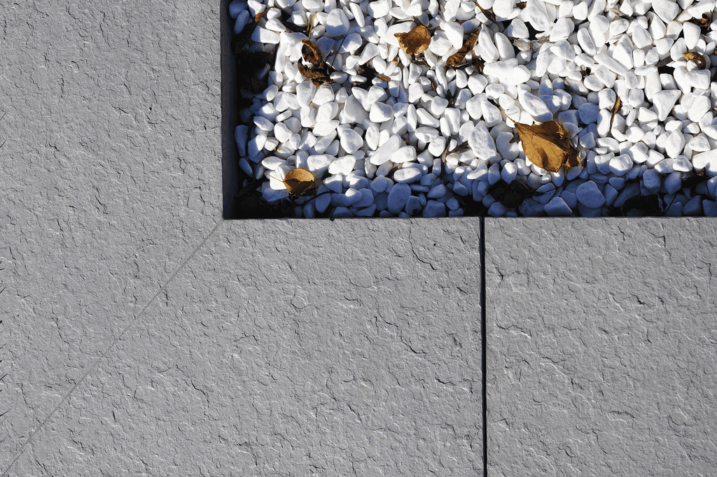 Ardezia pool rims combine safety with aesthetics. Thanks to their embossed surface, inspired by natural slate, they do not slip even after rain, and they also impart a luxurious feel. The colours Anthracite and Metallic underscore the modern style of your exterior, while the surface texture ensures a pleasant contact for bare feet.