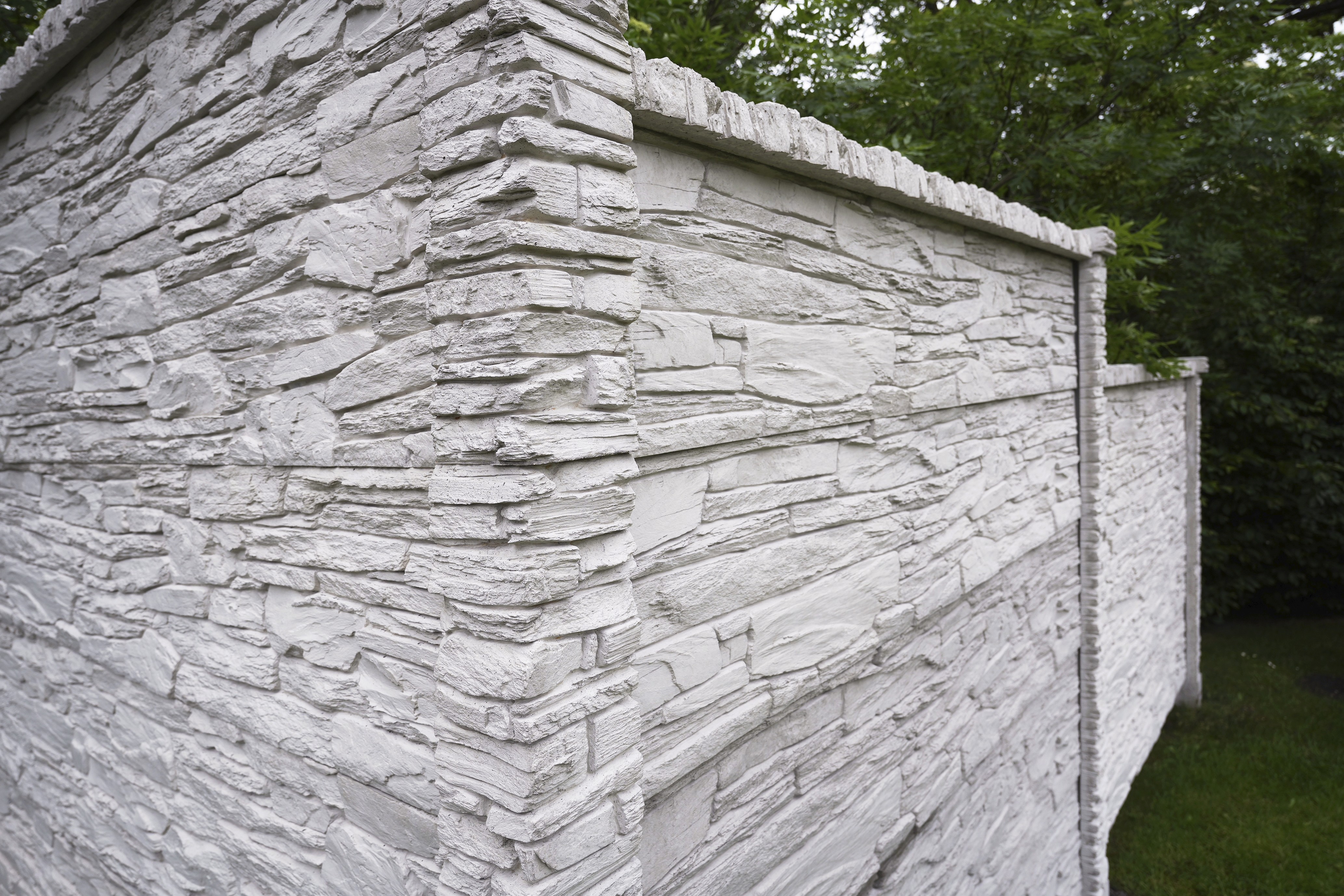 The York fence system with a natural stone relief offers privacy, security, and character in shades of Limestone, Slate, and Quartzite.