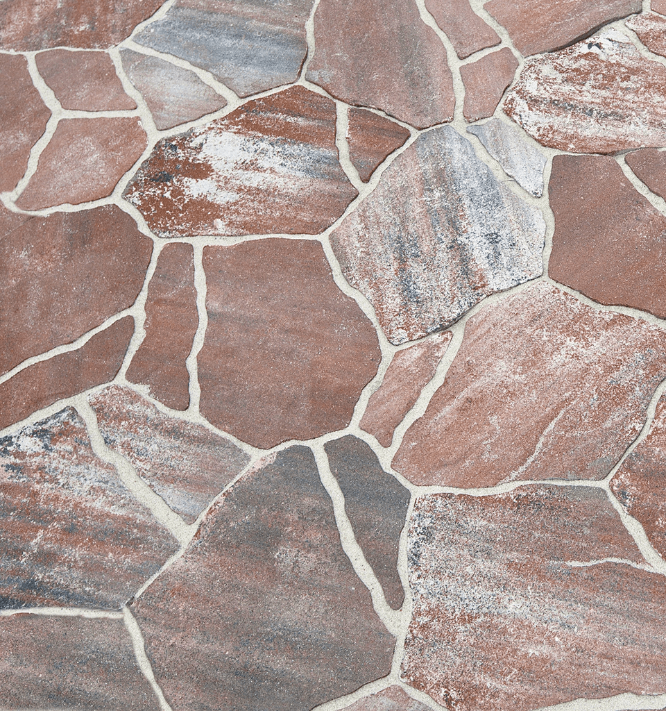 The Camino paving will surprise you with its naturalness. Thanks to its embossed surface, irregular shapes, and larger formats, it faithfully mimics the appearance of natural stone – whilst offering all the advantages of modern concrete. The shapes naturally fit into each other, creating a fine joint that can be filled with sand or small gravel.
