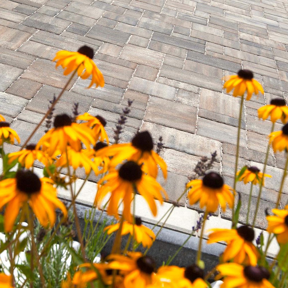 Brandenburg is paving that combines strength, functionality, and rustic charm. It's made from an original set of three different stones – squares and rectangles – with gently aged edges that create an authentic, slightly historical look. The minimalist joint between the elements allows for a clean connection while highlighting the natural colour of the paving.