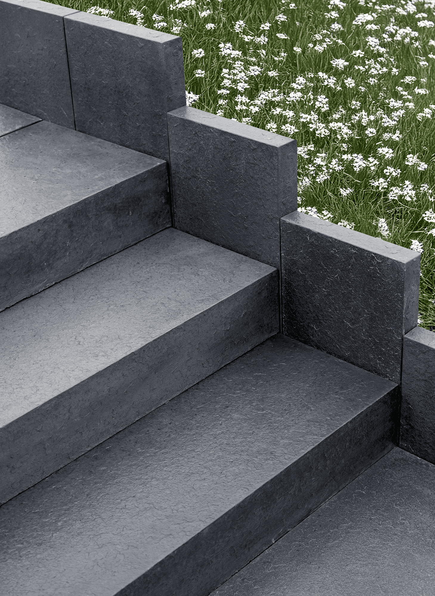 Thanks to their larger dimensions, they can handle more demanding terrain modifications and create a stable yet visually gentle transition between height differences. The textured surface adds dynamism to the space and naturally changes in the light, evoking the impression of real stone. Add style and stability to your garden with Ardezia palisades.