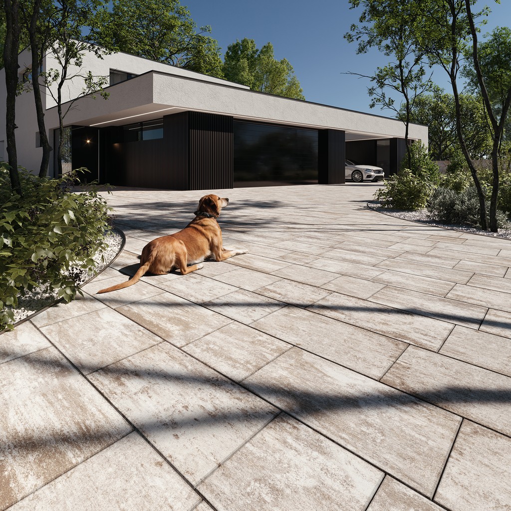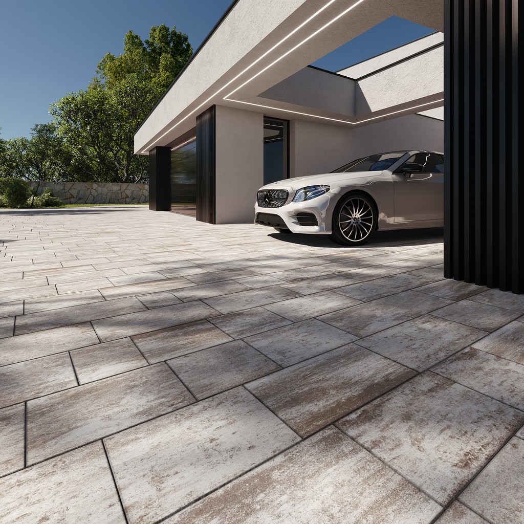 Valoria je dlažba, která do exteriéru vnáší lehkost, variabilitu a jemnou eleganci. Kombinace tří formátů – čtverce, menšího a většího obdélníku – umožňuje vytvářet hravé, ale přitom vyvážené skladby. Díky hladkým rovným hranám a decentní mikrofazetě působí moderně, čistě a zároveň velmi univerzálně.